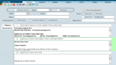 8. Click on the edit mode icon to capture the date, place etc on the top of the meeting type.