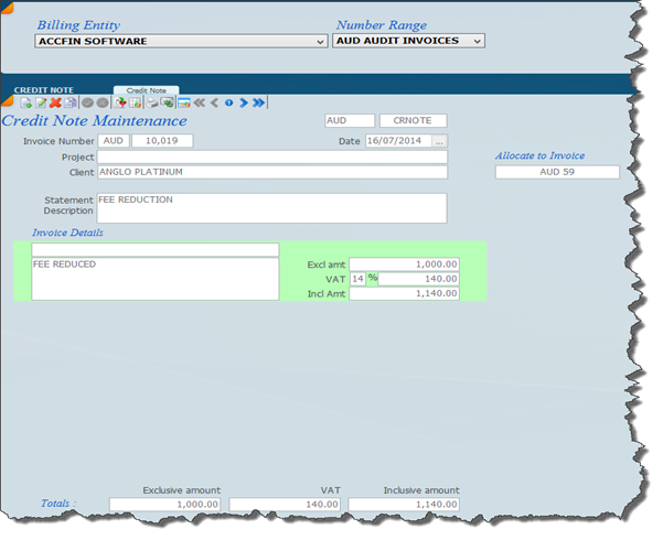 Credit notes work in a very similar way to an invoice. The point of doing a credit is to reduce the balance on a debtors account or invoice so it is important that you indicate which invoice is affected by the credit note by entering Allocate to Invoice.