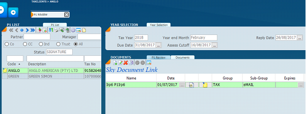 1. The screen below reflects the Client file screen. We have a list of clients displayed on the screen on the left-hand panel. These are the clients that we are going to be emailing in order to obtain their mandate for mandate approval.