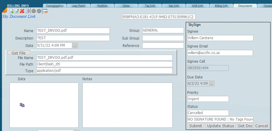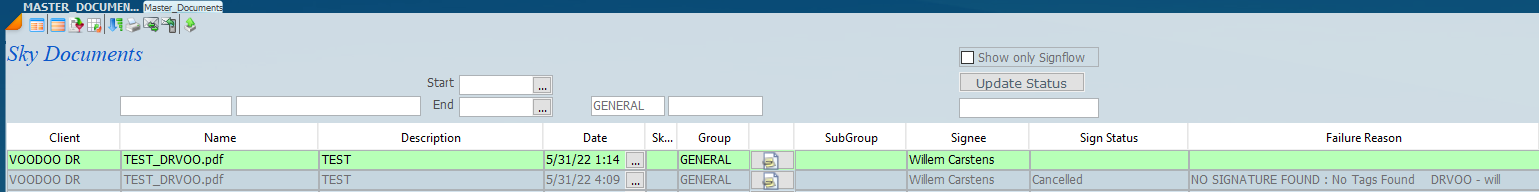 There is now also a field to show the reason why the sending of the digital signature failed. In the above case there was no signature on the document.