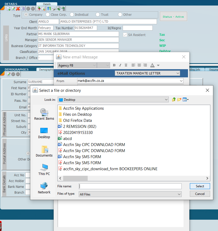 Sky Tax allows the attachment of addtional documents over and above a letter template which allows you to set up any PDF document.