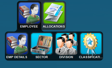 Detailed below is the employee menu tree. There are employee details and then all the items that employees will need to be linked to being Sector, Division and Classification so that reports can be produced.