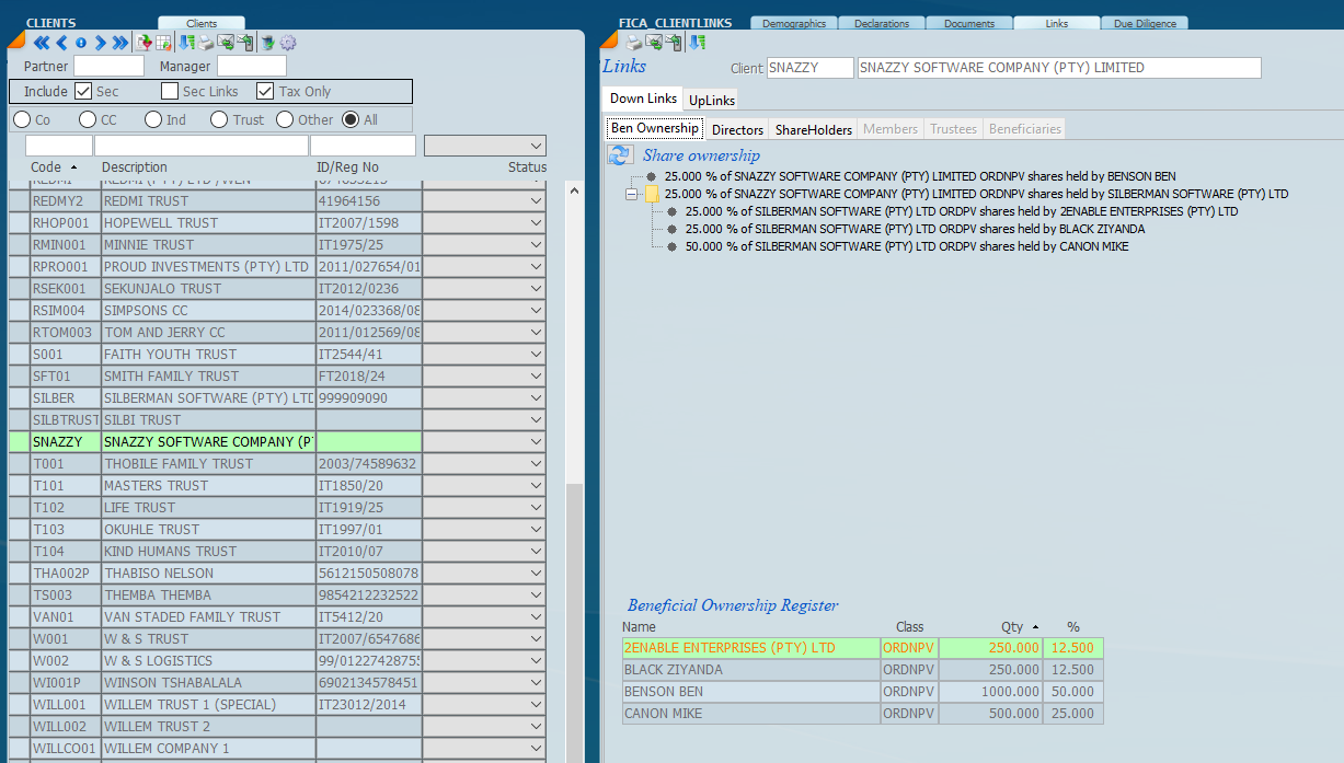 By selecting a company or a trust we are able to obtain the shareholders and beneficial ownership links.