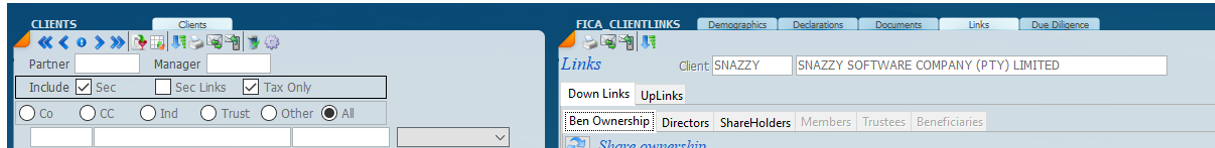 The FICA downlinks depending on the client selected will allow the selection of the following indicated on the screen below.