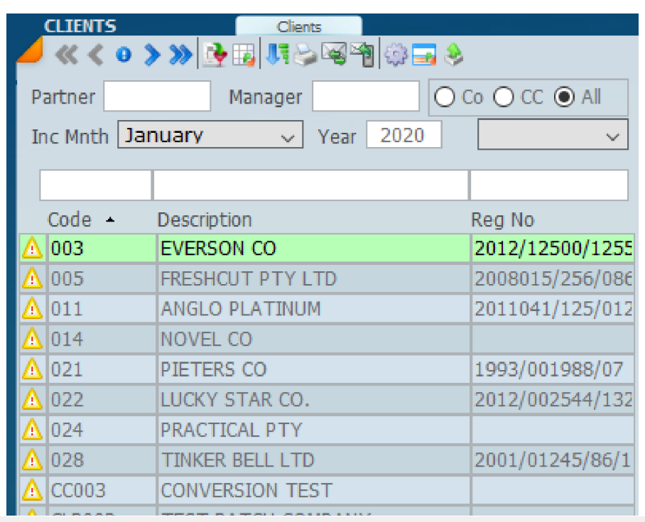 12. The exclamation icon indicates which returns are overdue for the year if no submission date captured.