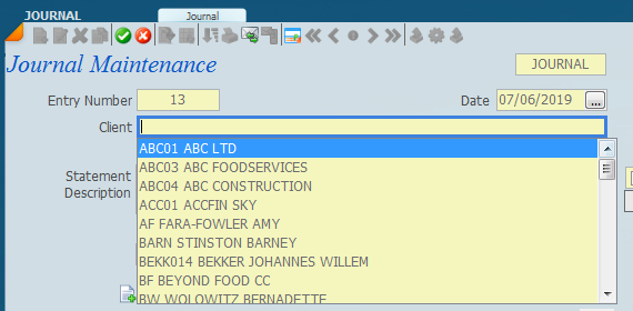 Click on “new” and select the client and put in the correct date (please note that the date has to be within the current period)
