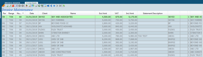 Click on “new” and select the client you want to invoice and put in the correct date (please note that the date has to be within the current period)