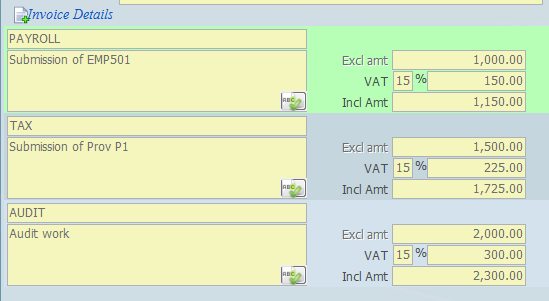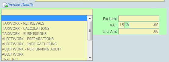 Then click on “invoice details” to select the billing code then insert the amount. Then save.