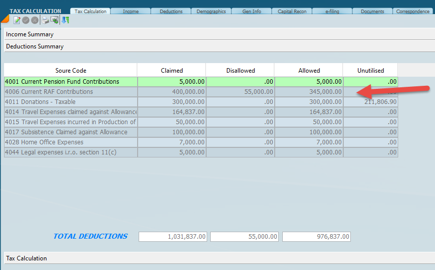 It’s important to understand exactly how the retirement funding contributions work for the tax year 2018. The different types of contributions being retirement annuity, pension and provident were brought together in 2018 and are now treated as one total calculation of contributions. The screen below depicts the deduction contribution screen for the 2019 year.