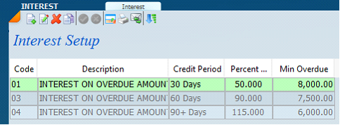 3. Credit Period is when interest must be calculated [eg, 30 days, then all amounts marked 30 days and over will be charged interest, 60 days, then all amounts marked 60 days and over will be charged interest, etc]