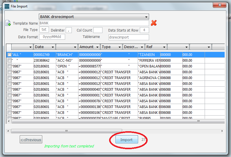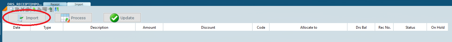 Click on Import (ringed below) and wait for the Receipts to be loaded back onto the main screen of the Import Page.