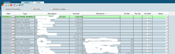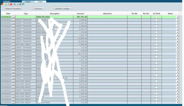 Click on Process and wait for the program to auto allocate the Receipts to the correct debtor accounts.