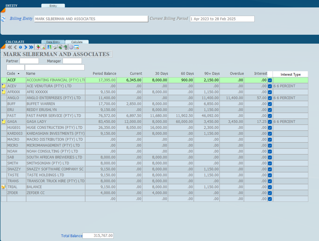 Select interest rates from Debtors Setup Interest and insert the rates. Also see
