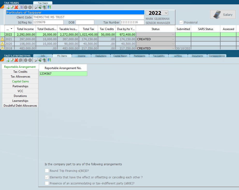 If there is a reportable arrangement the following must be entered, otherwise dont enter.