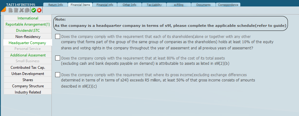 On the main screen if Headquarter is ticked this screen will be available for entry.