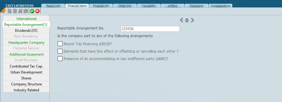 On the main screen if Reportable Arrangement is ticked this screen will be available for entry.