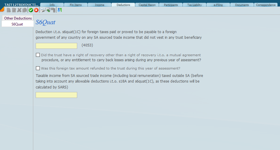 Enter the trust deductions on the screen below. By clicking on the source code area there is a list of source codes that can be used.