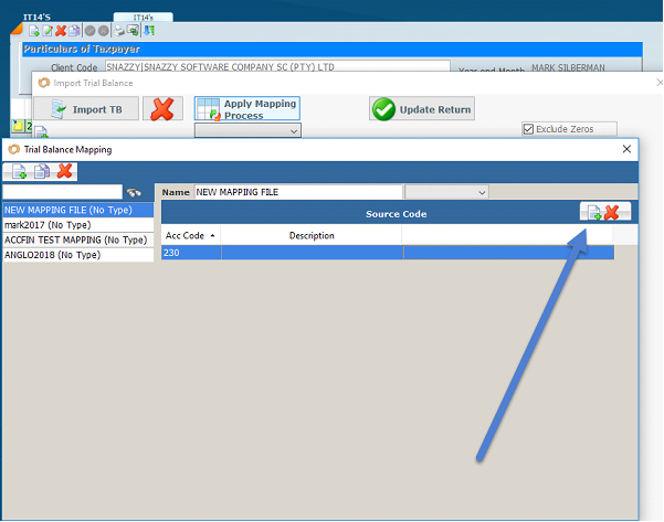 From now on in any particular year that you have mapped the files to the source codes and you get a trial balance for the following year, import the trial balance, and then click on Apply Mapping Process and the system will import the trial balance which has no source codes and apply the source codes from the previous year.