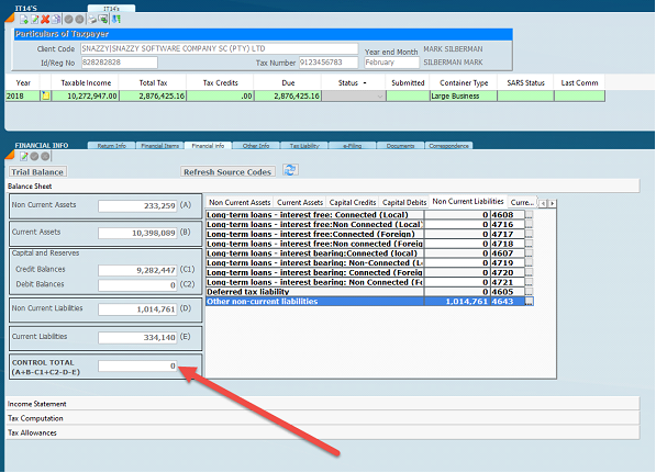 The hardest most time consuming task is actually inputting the trial balance amounts and getting the right Accfin Sky source code against each amount entered. SARS does not use source codes they use a description whereas in our software we use a source code which of course make things much easier. The trick is getting the Accfin Source code from the trial balance amounts that come out of a set of working papers or the general ledger amounts that come out of an accounting system with the Accfin Sky source codes.