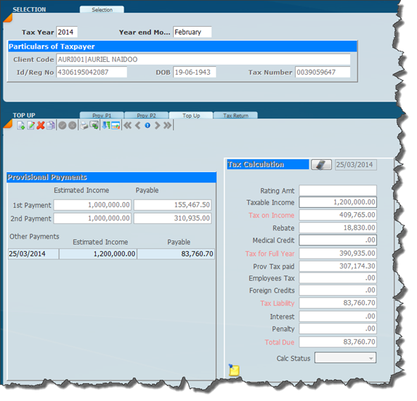 The P3 or Top Up calculation routine must be done for the previous year whenever you run the P1 process where the need arises. When doing the calculation for P1 2015 you will be doing the P3 for 2014 simultaneously. A P3 or top up payment is a voluntary payment that should be paid in order to avoid interest been levied by SARS. Please note there is no filing of any form, all that has to be done is for a payment to be made with the correct payment reference number. P3’s or top ups should be done in consultation with your clients.