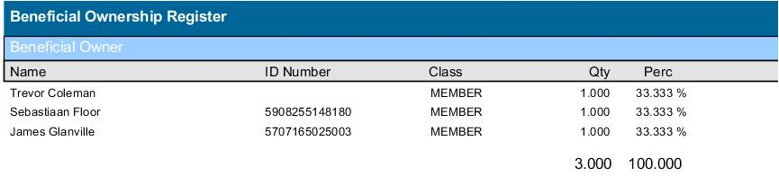 You will also be able to print the organogram and the beneficial ownership register, percentage being the control as described above