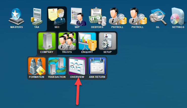 SELECT the menu options as indicated above. The Overview will give the user all the data about a particular company with pivot tables. See all the links to directors, members and shareholders and the other way around.