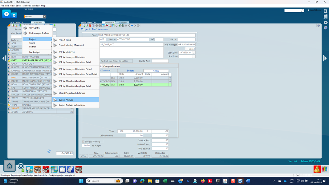 To print the budget report the menu options indicated below.