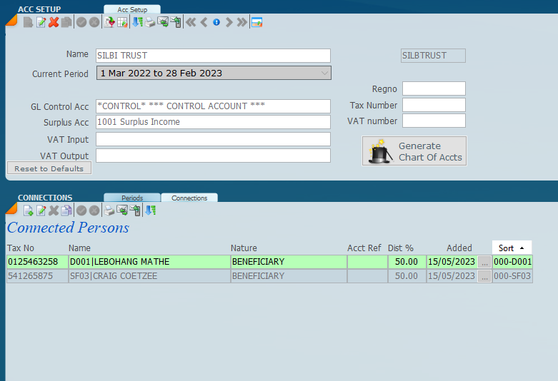 If the distribution percentages are known they can be entered as they have on the screen above. In a discretionary trust they will not be known the system will make the percentages equal amonst beneficiaries.