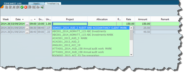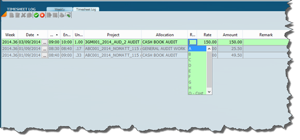 Instead of working on the graphical time sheet interface the Time sheet log can be used to capture the time sheet.