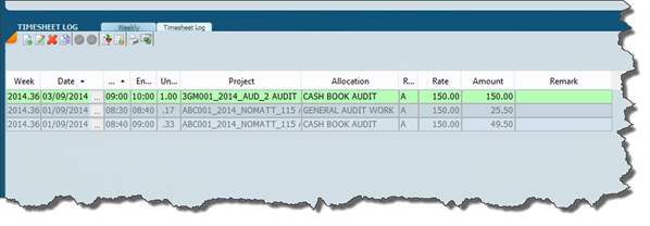 Click on the Timesheet log tab and a transactional view will display as in the screen below.