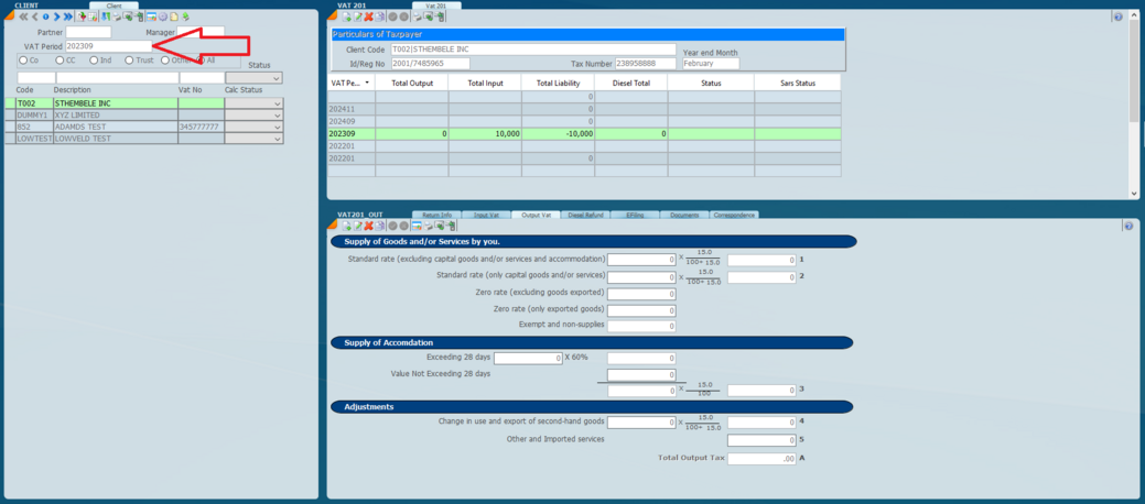 3. Once you are on the VAT 201 screen you will start by selecting your period that you will be working on, this is done on the left hand side of the screen by the