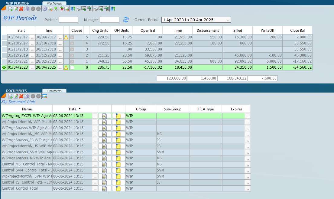 WIP period documents are where you store the month end documents. Select the function wheel to generate the documents.