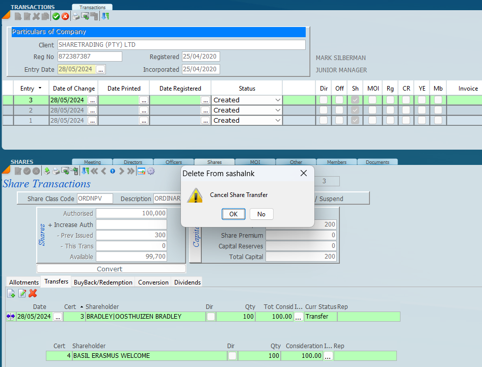 Cancel Share Transfer