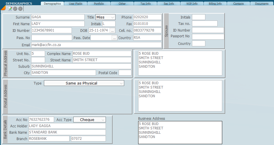 This screen works with the front page of an ITR12 and is compared with the download of the data from SARS. Click here for more information. How to check your demographics