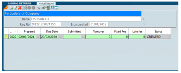 10. Make use of the status to keep track of the annual returns (you can add more statuses, call support for assistance)