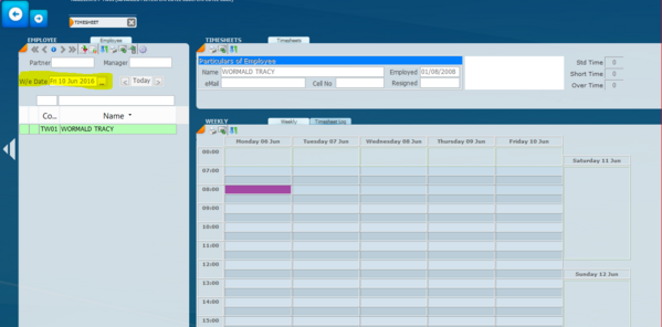 14. Click on the new icon, to create a new entry from here, which will automatically complete the time as from the last entry