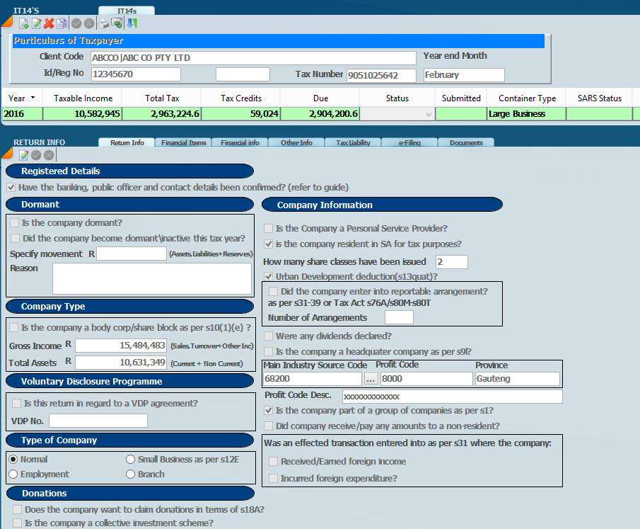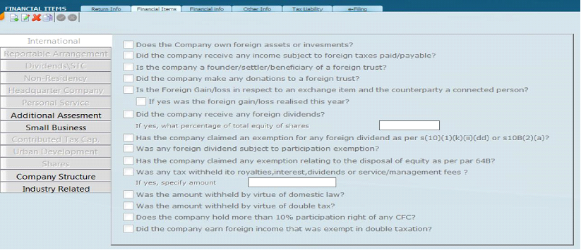 · Depending on what you put here, SARS will generate various other bits of the tax return required.