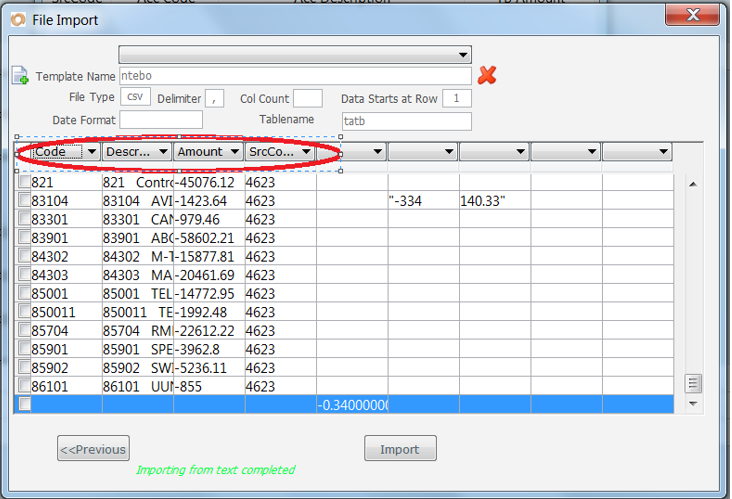 · Click on Trial Balance to import and the screen below will display:
