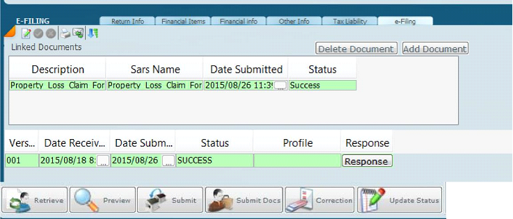· Click on the e-filling tab to submit. If the status is QUEUED – click on “Upd SARS Status” so that the status will change to SUCCESS