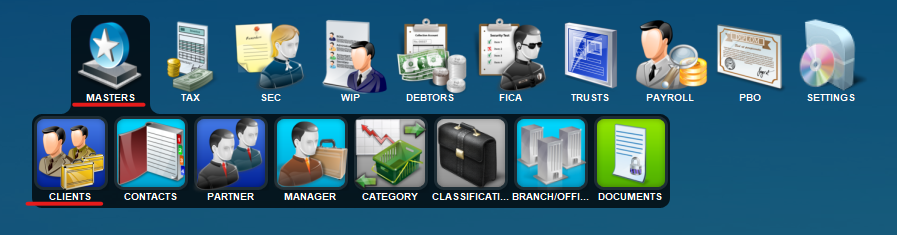 By Creating a record under the Tax Info, Sec Info, WIP Info and Billing Info will tag them for these modules, this can be seen under the Clients details as those modules will appear in green.