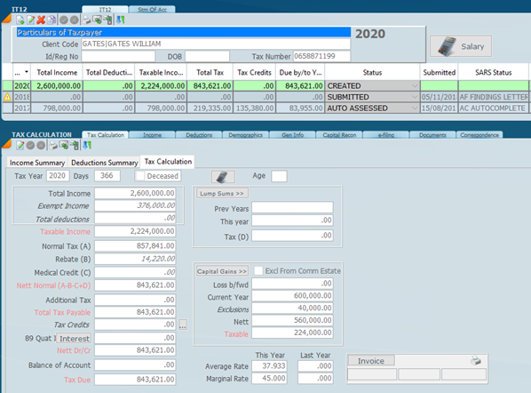 The screen below shows the end result of the taxable capital gain with the taxable amount being included in the tax calculation.