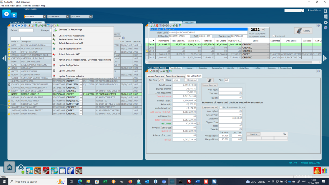 Sky Tax will process the option selected on the function wheel for all the taxpayers listed in the left hand panel. Ensure that you have set the correct filters so that you don't process taxpayers that should not be there. This can be done for Partners and Managers and selected filters.