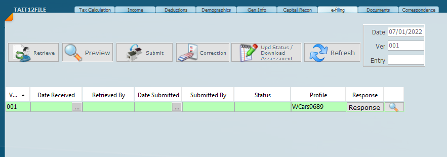 Make sure the correct filter is set and that the correct list of clients is processed. Most of the processes listed can be run individually on a client from the e-Filing tab.