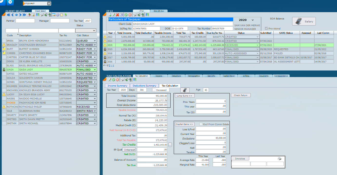 We show the IT12 input screen below and you will see that it consists of 3 panels on a very similar basis to the Client Master.