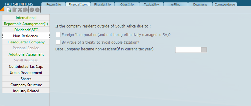 On the main screen if Non - Residency is ticked this screen will be available for entry.