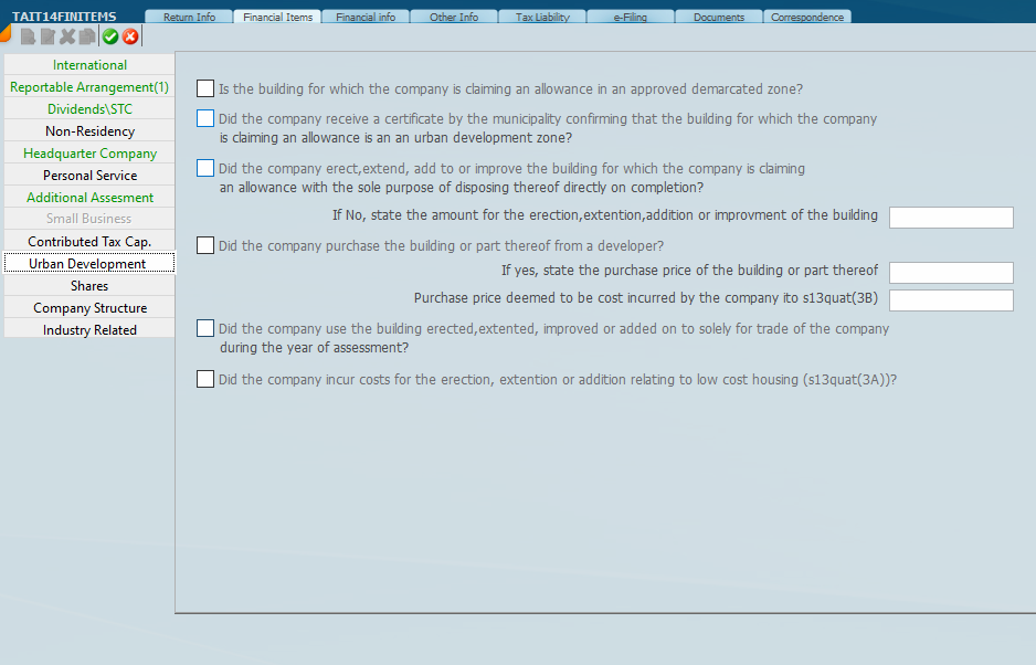 On the main screen if Urban Development is ticked this screen will be available for entry.