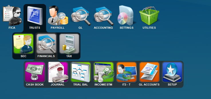 It is important to note that the purpose of Sky Trust Accountig is to generate the necessary data for the IT3-T uploads and for the prepopulation Tax Returns. Make a decision on which accounting route you wish to use, as there are a number of methods in order to get to the same end result. See the setup Sky Trust Administration Setup.