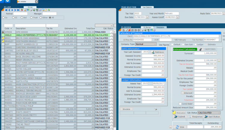 Once the review process is complete and a clients provisional tax calculated and the income known and there is confirmation from the client that they are going to pay the necessary provisional tax the practitioner is in a position to file the provisional tax return in bulk making use of the following screen.