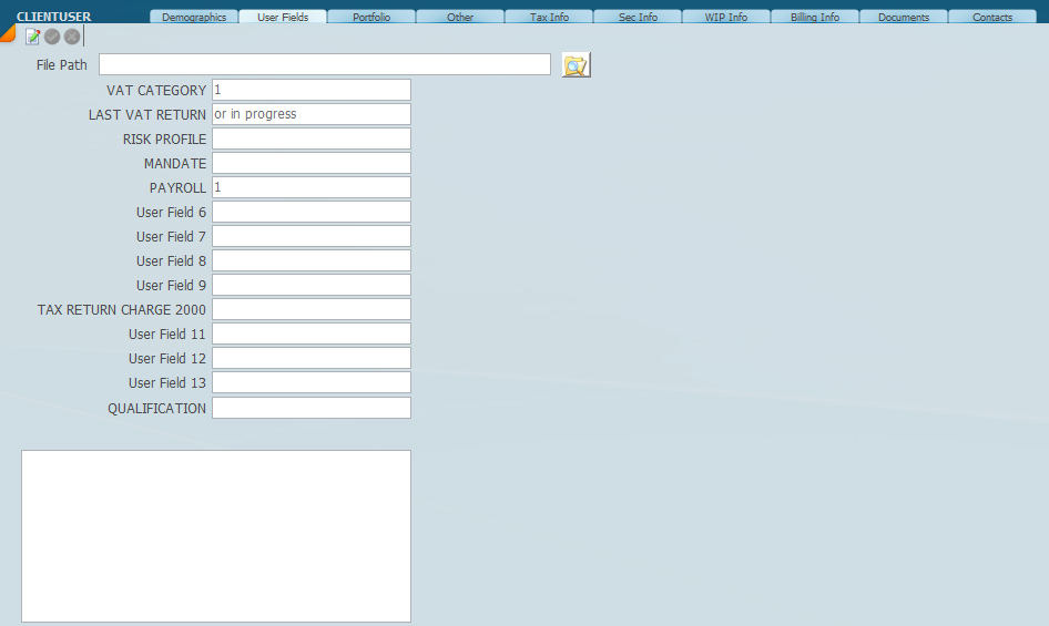 The File path will allow you to access the documents for the client. Click on edit mode and type in the path. Save and then click on the folder search icon