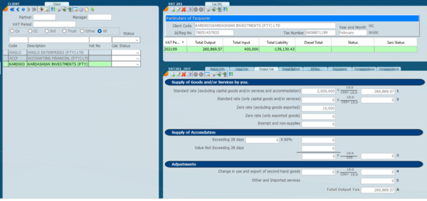 In order to create a record you need to click on the new icon on the top , and then enter the total purchase used and the non-eligible purchases used per each section they apply to. The rates at which these will be multiplied will pre-populate onto the return when you retrieve from SARS.